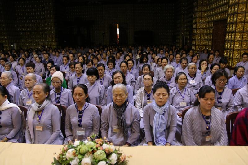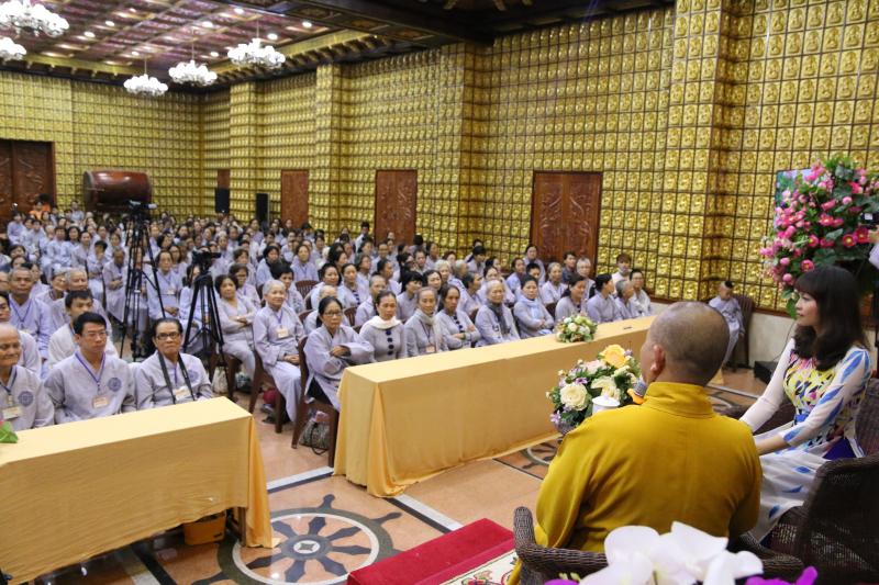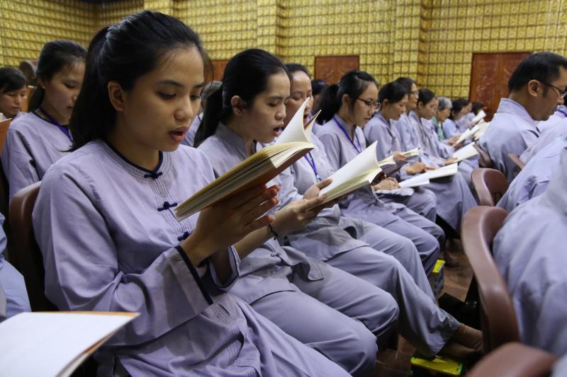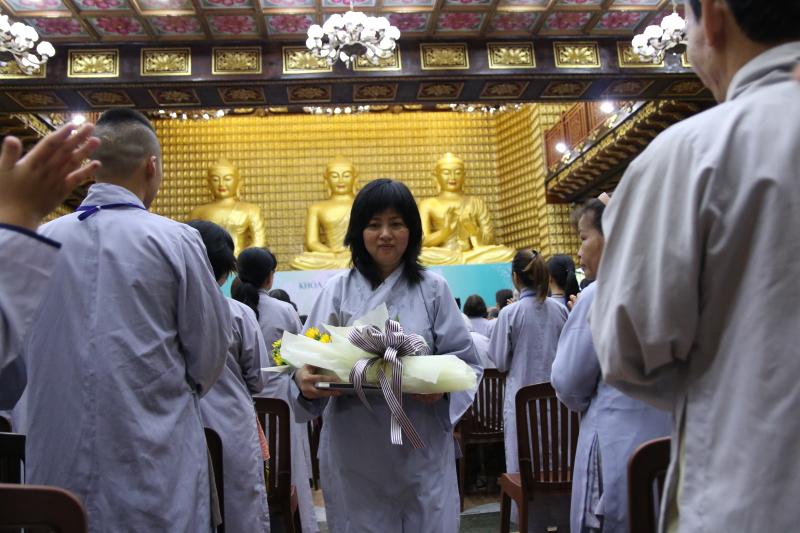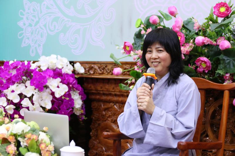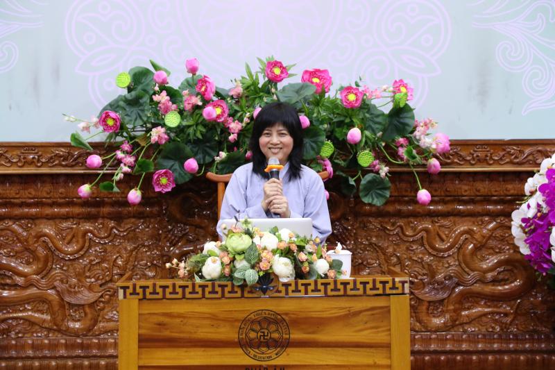 Cô đến khóa tu với mục đích chia sẻ kinh nghiệm tu học Phật pháp và dấn thân phụng sự trong việc hoằng pháp độ sinh. Sáng nay các hàng giả đã lắng nghe bài pháp thoại với chủ đề: ‘’Luân hồi là gì’’.