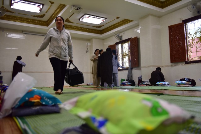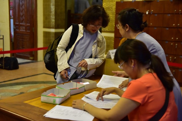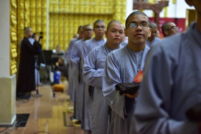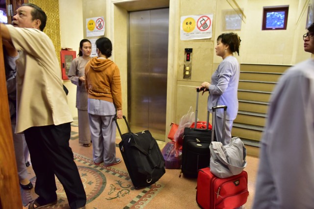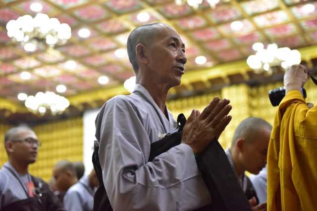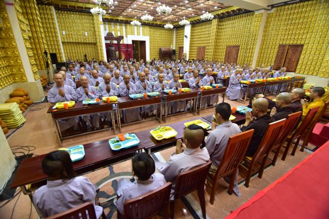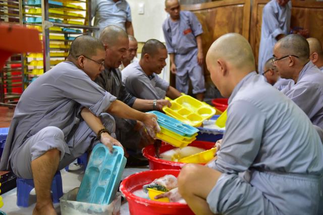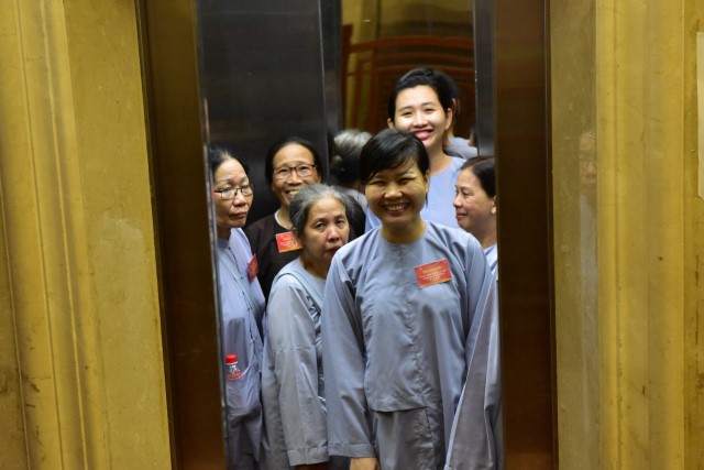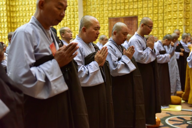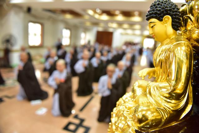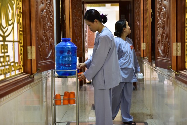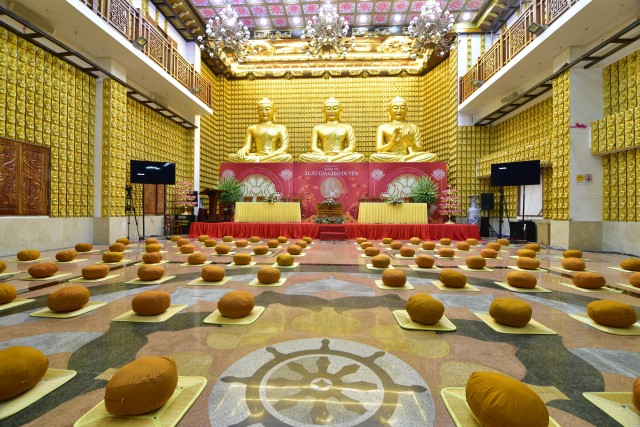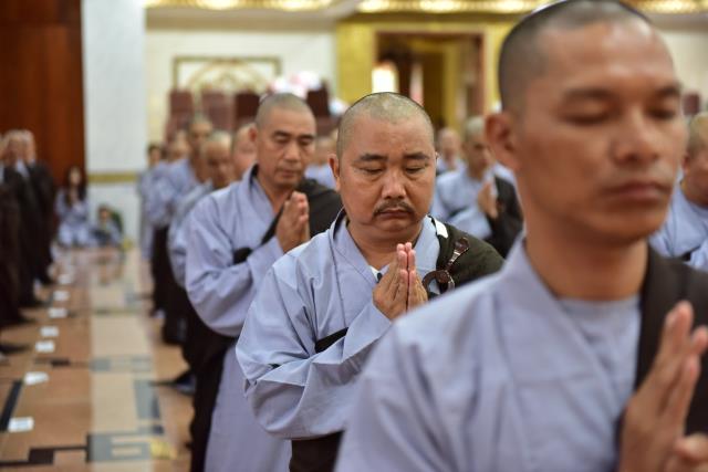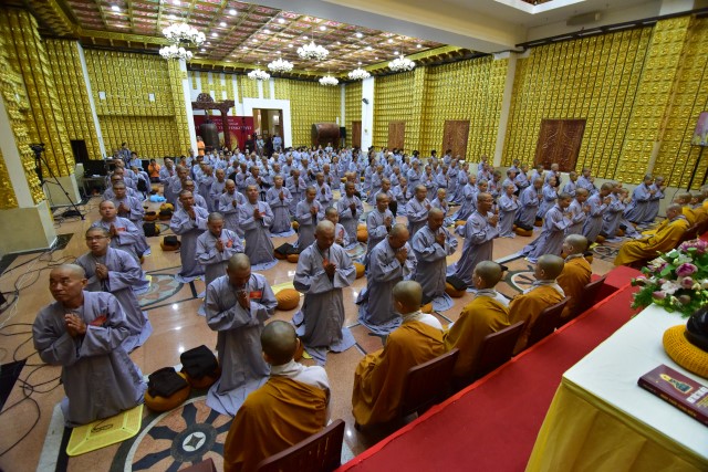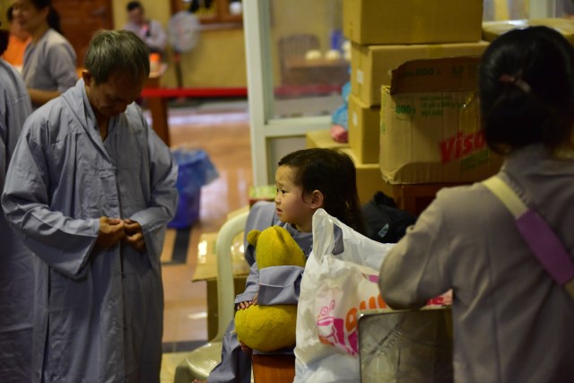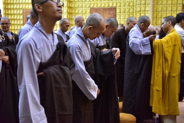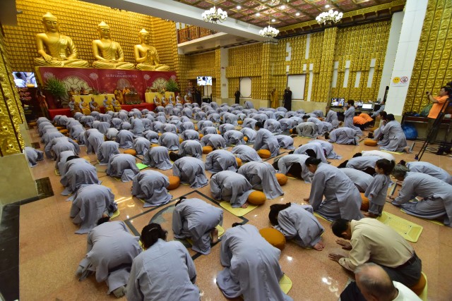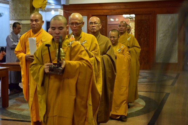 Tập trung lên chánh điện để chuẩn bị làm lễ.