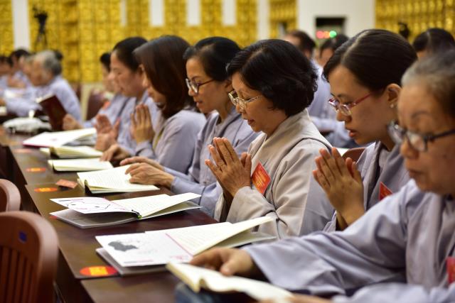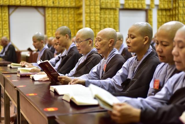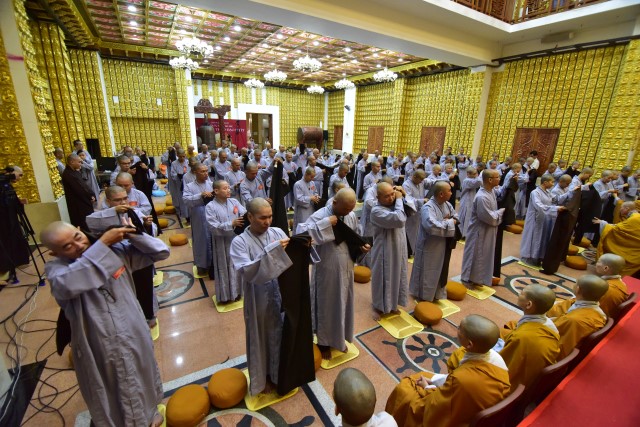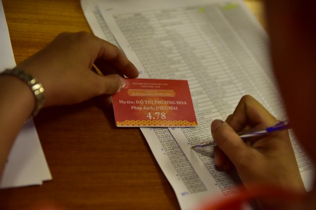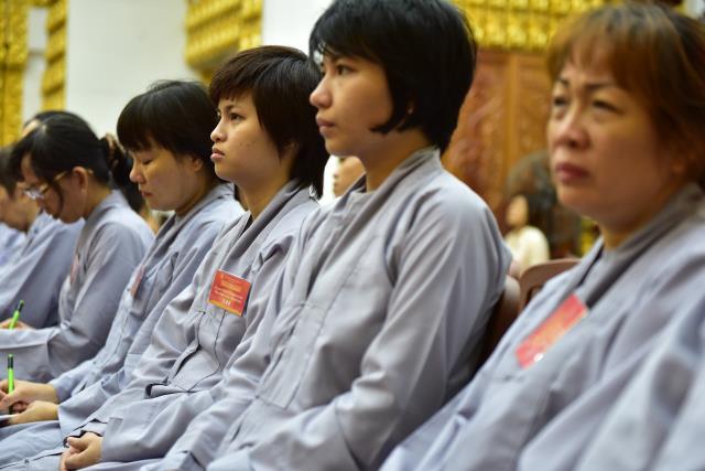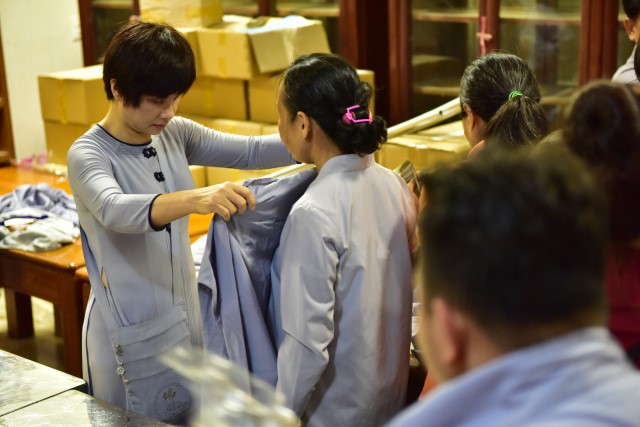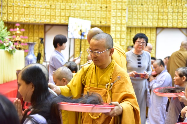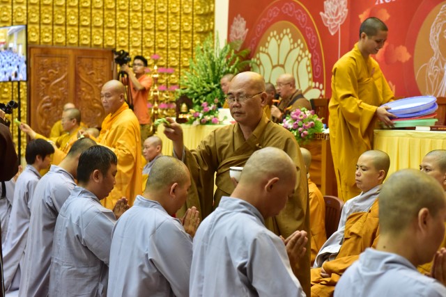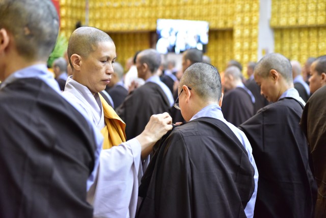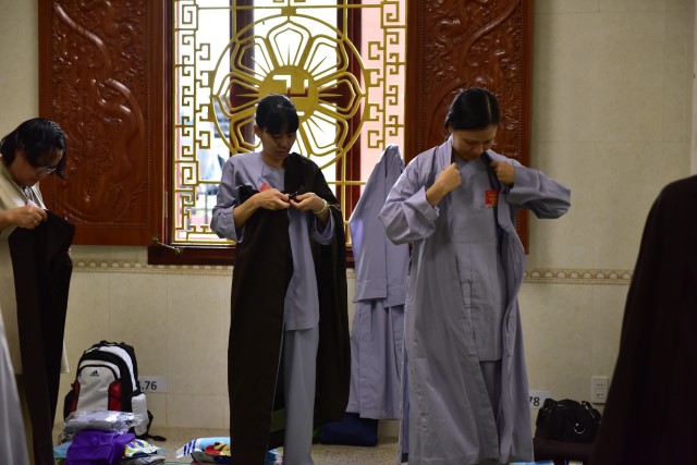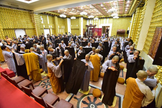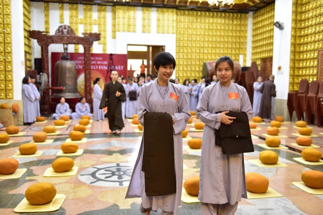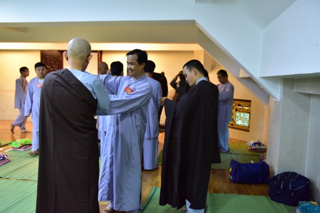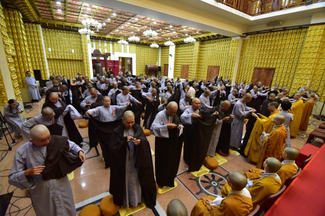 Các giới tử đã cùng tuyên đọc ý nghĩa của việc đắp y và tuần tự đắp trên thân của mình chiếc y pháp phục, biểu tượng của ruộng phước, hạnh giải thoát, hạnh thoát tục, hạnh thoát khỏi sinh tử luân hồi.