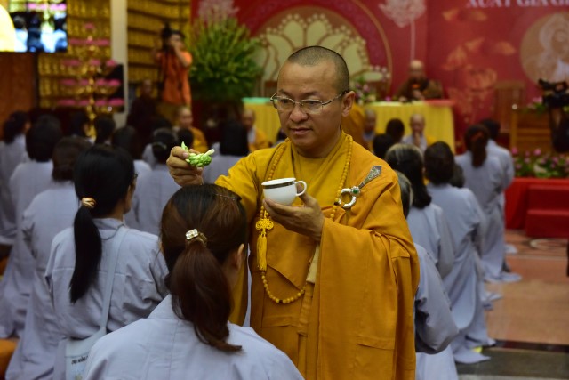 Sau đó là nghi thức truyền giới Sa- di và Sa-di-ni và Bát Quan Trai giới. Các Phật tử đã đảnh lễ cảm tạ bốn trọng ân lớn. Để các đệ tử hiểu được hết ý nghĩa của việc thế phát xuất gia gieo duyên, TT.Thích Nhật Từ đã khai đạo, chỉ đường, khai tâm để các giới tử được sáng suốt. Theo Thượng tọa, cách đây 26 thế kỷ trở về trước, tại Ấn Độ, những người đã cùng lý tưởng của đức Phật chọn con đường phụng sự nhân sinh làm lối sống của mình, xuất gia chọn đời. Tuy nhiên, cũng có một số người do những khó khăn của đời sống xã hội chưa đủ điều kiện để phát tâm xuất gia, hoặc là do còn đời sống vợ chồng hoặc do trách nhiệm hiếu kính ông bà, cha mẹ, trách nhiệm với con cái, hoặc do công việc làm ăn hoặc do không thể kham nổi xuất gia chân chính trọn đời. Đức Phật đã mở cơ hội cho họ xuất gia 1 ngày trong 24 giờ, từ ngữ Phật học được đức Phật sử dụng gọi là tiếp nhận Bát Quan Trai giới, tức là tiếp nhật 8 giới xuất gia. Tám giới xuất gia này giúp cho các thiện Nam và tín Nữ gần được làm Sa-di và Sa-di-ni trong suốt thời gian phát nguyện này. Giới Sa-di thì có 10, trong khi Bát quan Trai chỉ có 8 giới. Giới Sa-di thứ 7 và 8 gộp lại làm 1, trên thực tế Bát quan Trai giới có 9 giới Sa-di.