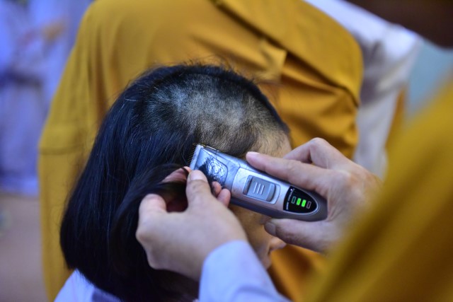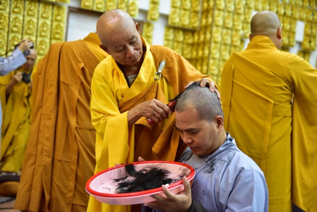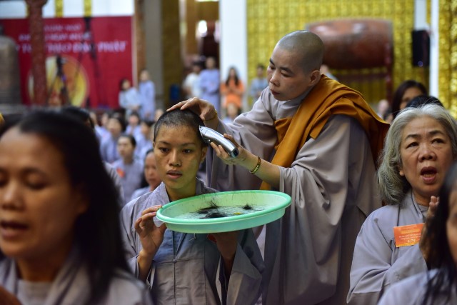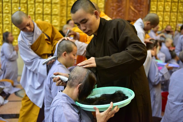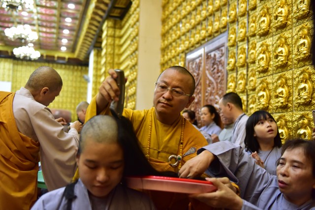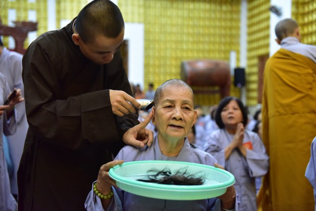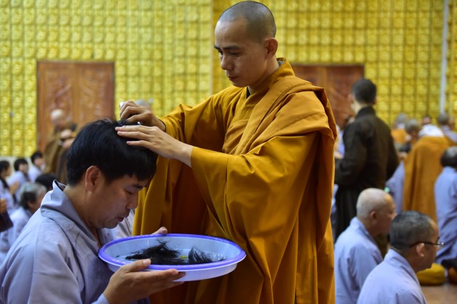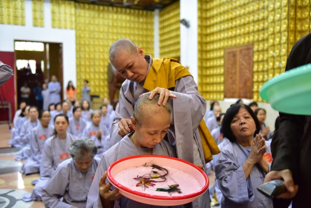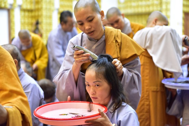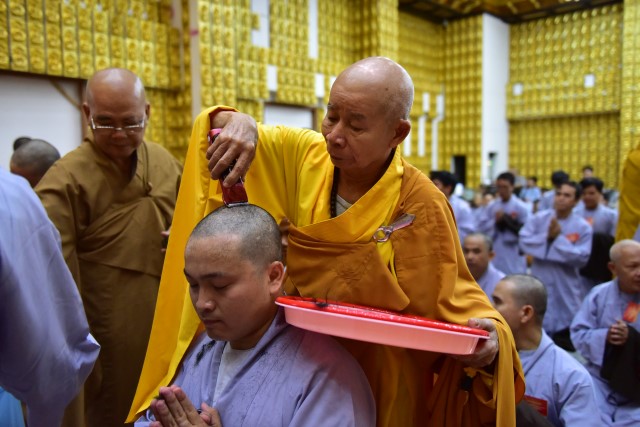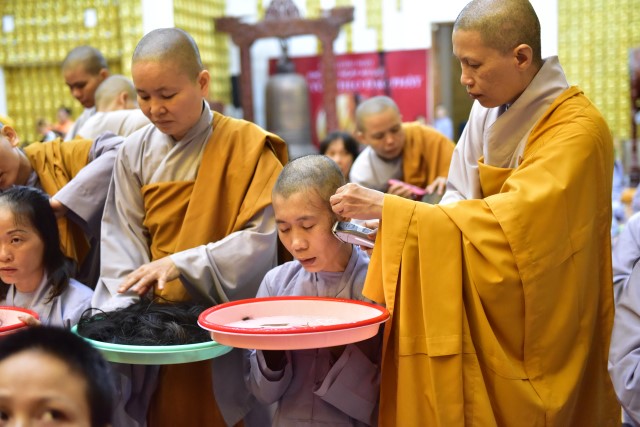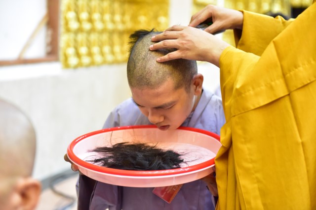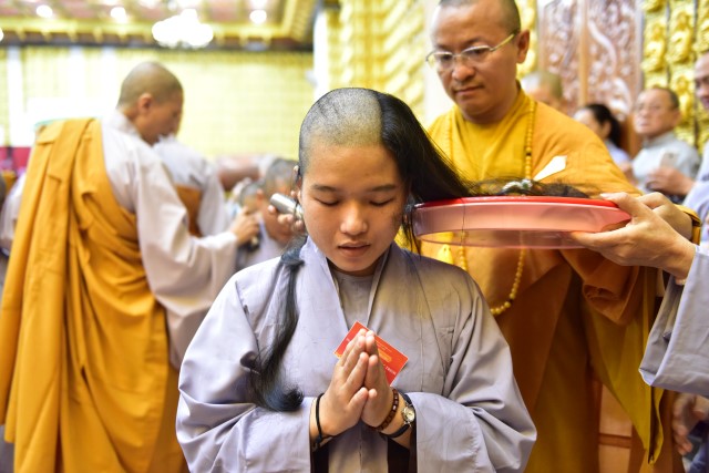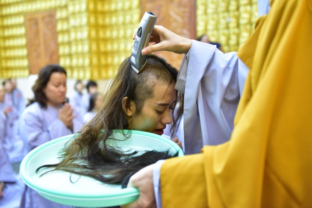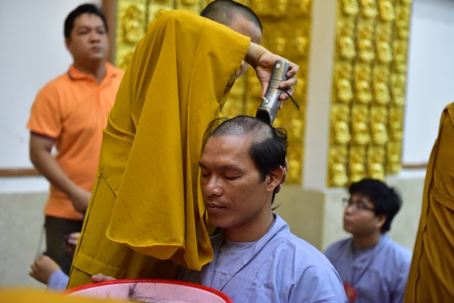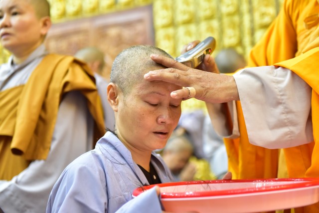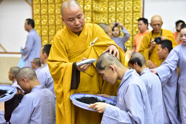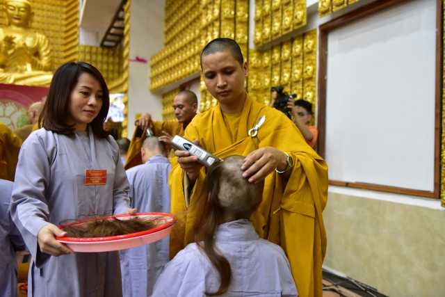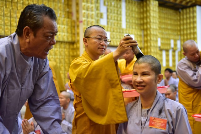 Trước khi các giới tử cạo tóc, đắp y cho giới tử tiếp nhận xuất gia, TT. Thích Nhật Từ giải thích ý nghĩa việc cạo tóc và ý nghĩa của chiếc y mà chỉ vài phút vừa qua những giới tử đã cạo bỏ mái tóc mà theo dân gian Việt Nam là “cái răng, cái tóc là vóc con người”.