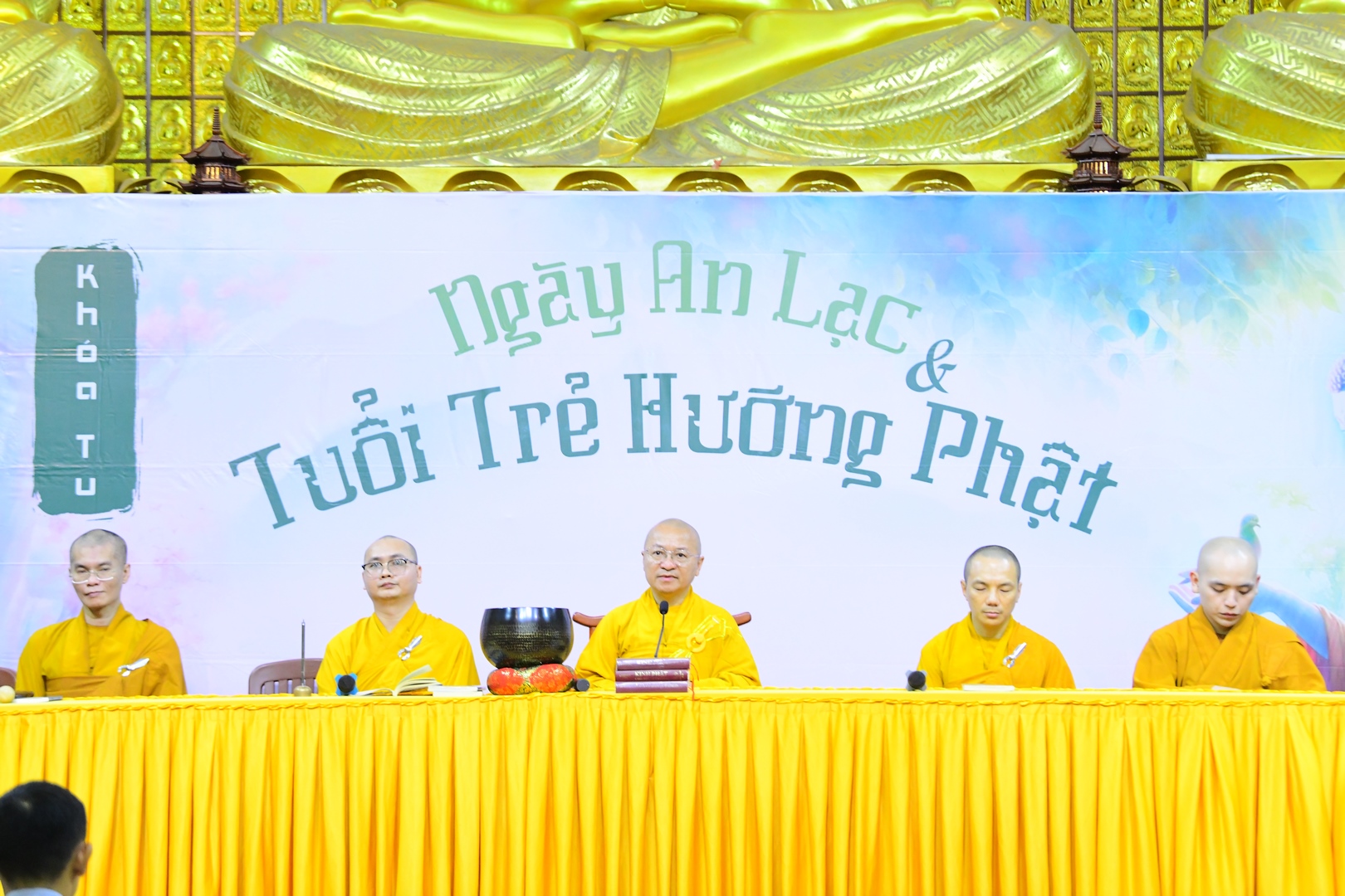 Sau một thời pháp thoại ngắn và thời Kinh, chư tôn đức Tăng đoàn đã dành thời gian chia sẻ Phật pháp, giáo lý đến các tân Phật tử.