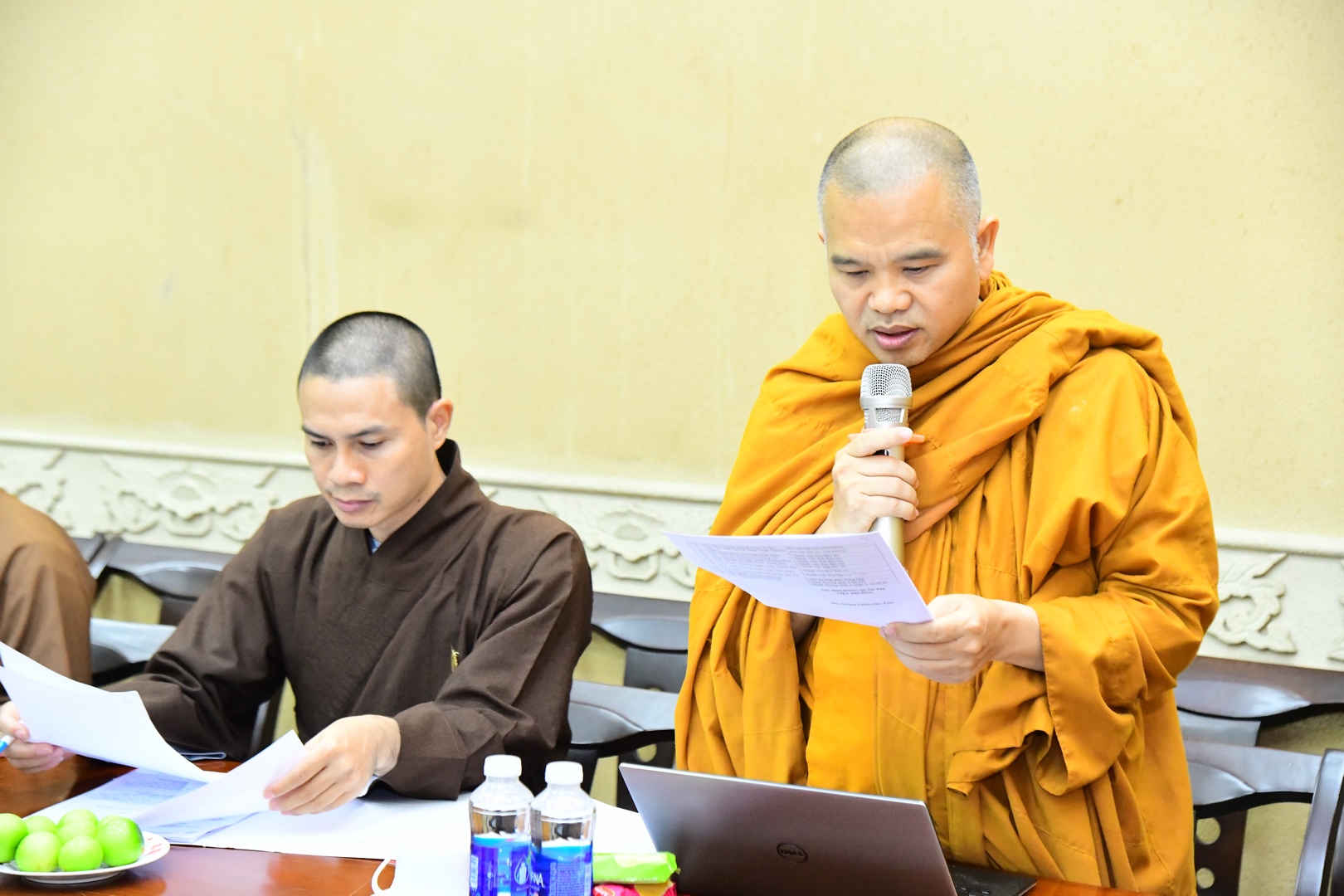 Tại phiên làm việc, TT. Thích Giác Hoàng báo cáo các hồ sơ xin bằng khen của Chính phủ, UBND TP.HCM, bằng tuyên dương công đức của HĐTS và Dự thảo Chương trình Kỷ niệm 35 năm thành lập Viện NCPH Việt Nam.
