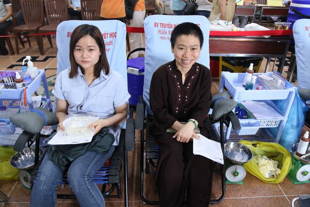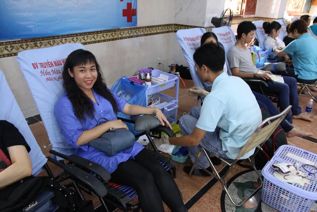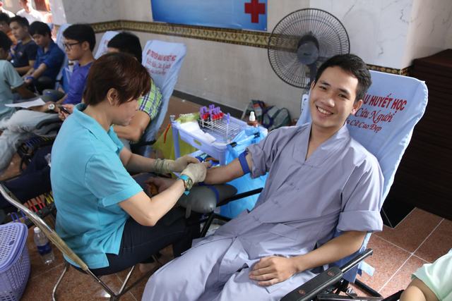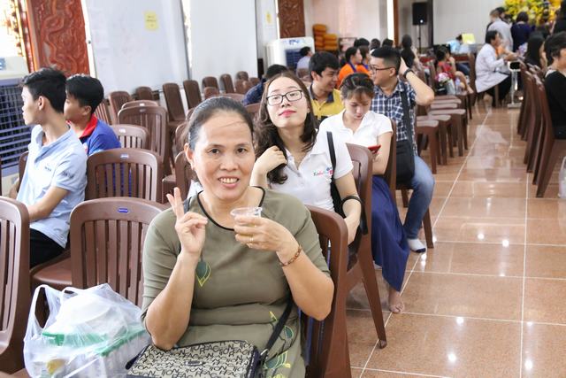 Sáng nay. Người đến xếp hàng cho máu đầu tiên là một cậu bé vừa bước sang tuổi 18 được ít bữa, là Học sinh lớp12 Trường PTTH Long Thành Đồng Lai, cậu bé kể rằng, cách đây 2 tháng cậu đã về đây hiến máu nhưng vì không đủ tuổi nên phải ngậm ngùi ra về. Đợt hiến máu này có nhiều các Tăng Ni ở các chùa rất xa như thầyThích Trí Thanh chùa Hoằng Pháp, người 4 lần hiến máu; thầy Thích Trí Lực chùa Giác Thánh; Sư cô Đức Thiện chùa Bình An…Có gia đình cả nhà rủ nhau đi hiến máu như gia đình anh chị Tuyền Thịnh – Kim Mai; Các bạn sinh viên năm thứ nhất Đại học Sư Phạm, Phượng Vĩ, Chí Công lần đầu tiên rủ nhau đi hiến máu. Bạn Mai Trung, kỹ sư xây dựng đã hiến máu lần thứ 4, sáng nay cũng tranh thủ đi xếp hàng từ rất sớm để hiến máu xong là đi làm. Các bạn như Toàn Thắng, nhân viên KD 11 lần hiến máu. Anh Đào, Kim Cúc, Xuân Bình, Công Hoàng Nguyễn Hùng có từ 5- 10 lần hiến máu. Đặc biệt có hai bạn Nguyễn Thuận và Thanh Hải, giáo viên từ Hà Nội đi công tác tại TP.HCM khi xuống sân bay vội tìm về chùa để kịp giờ hiến máu, nhưng trong hai chị lại chỉ có một người đủ tiêu chẩn hiến máu. Đặc biệt có cô Thanh Hà 45 tuổi là giáo viên Mầm non đã 26 lần hiến máu, khi được hỏi về việc hiến máu nhiều như vậy, có ảnh hưởng gì đến sức khỏe thì chị cho biết khi chưa hiến máu chị hay ốm đau và người rất nhỏ, giờ thì không ai bảo chị là cô bé gầy còm và có độ tuổi trẻ hơn 45 như thế !