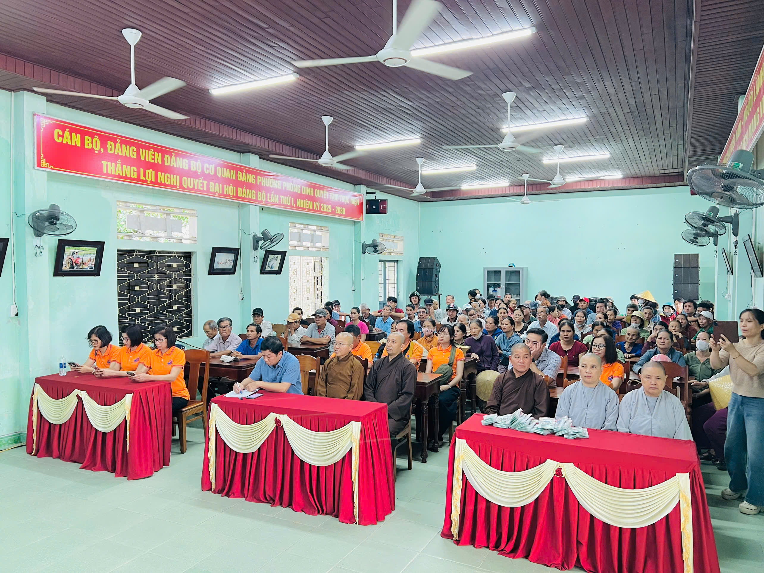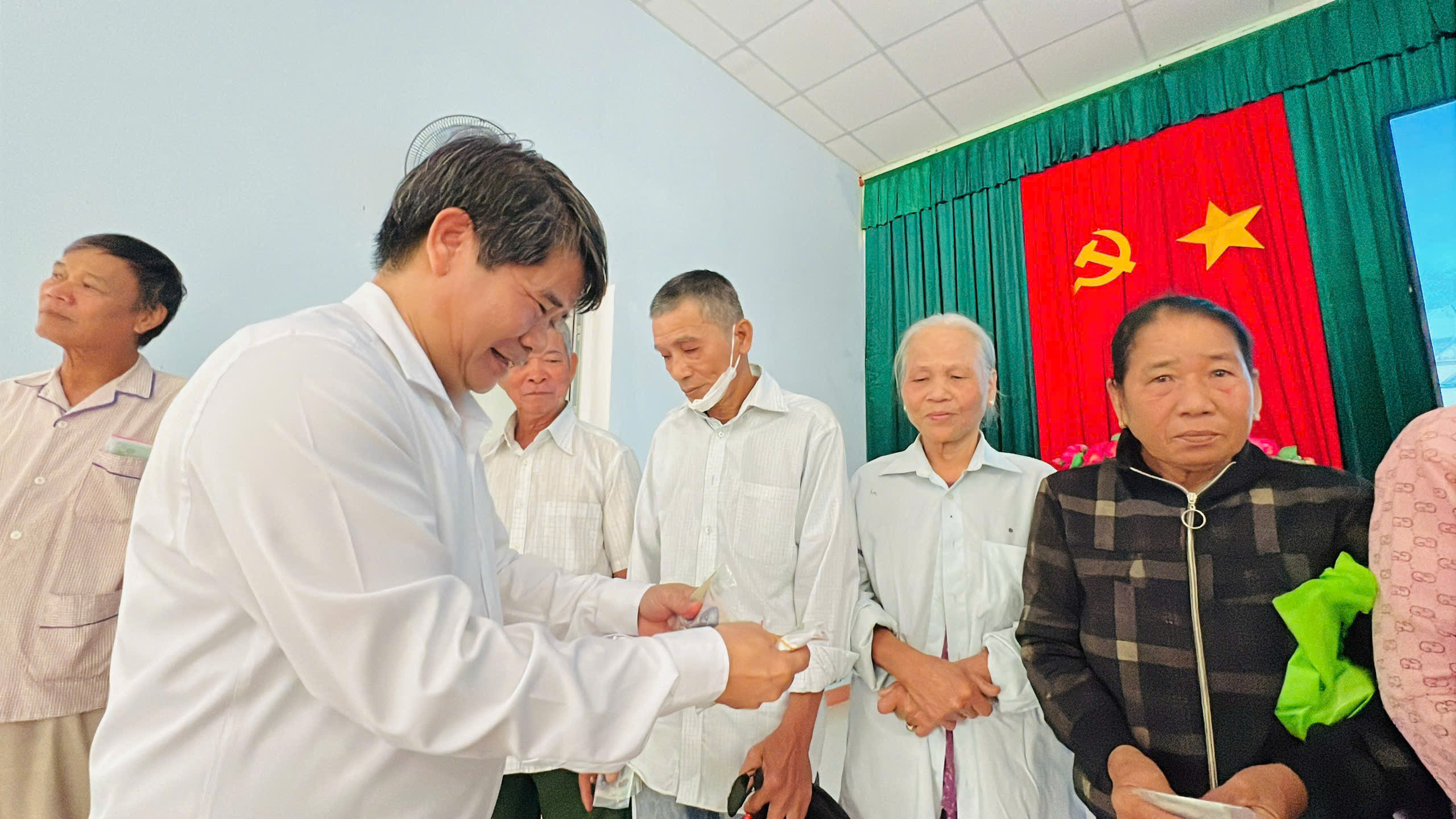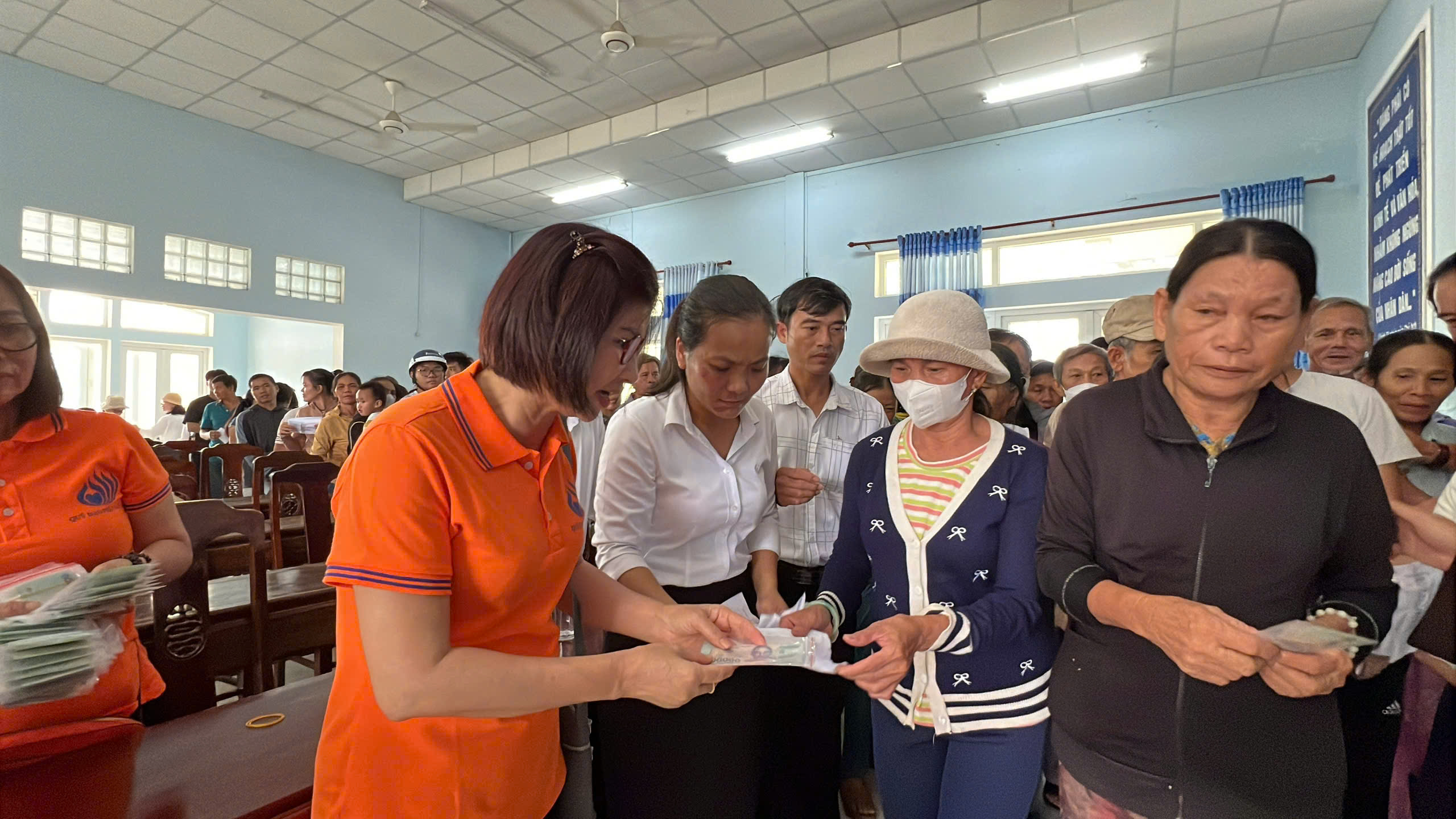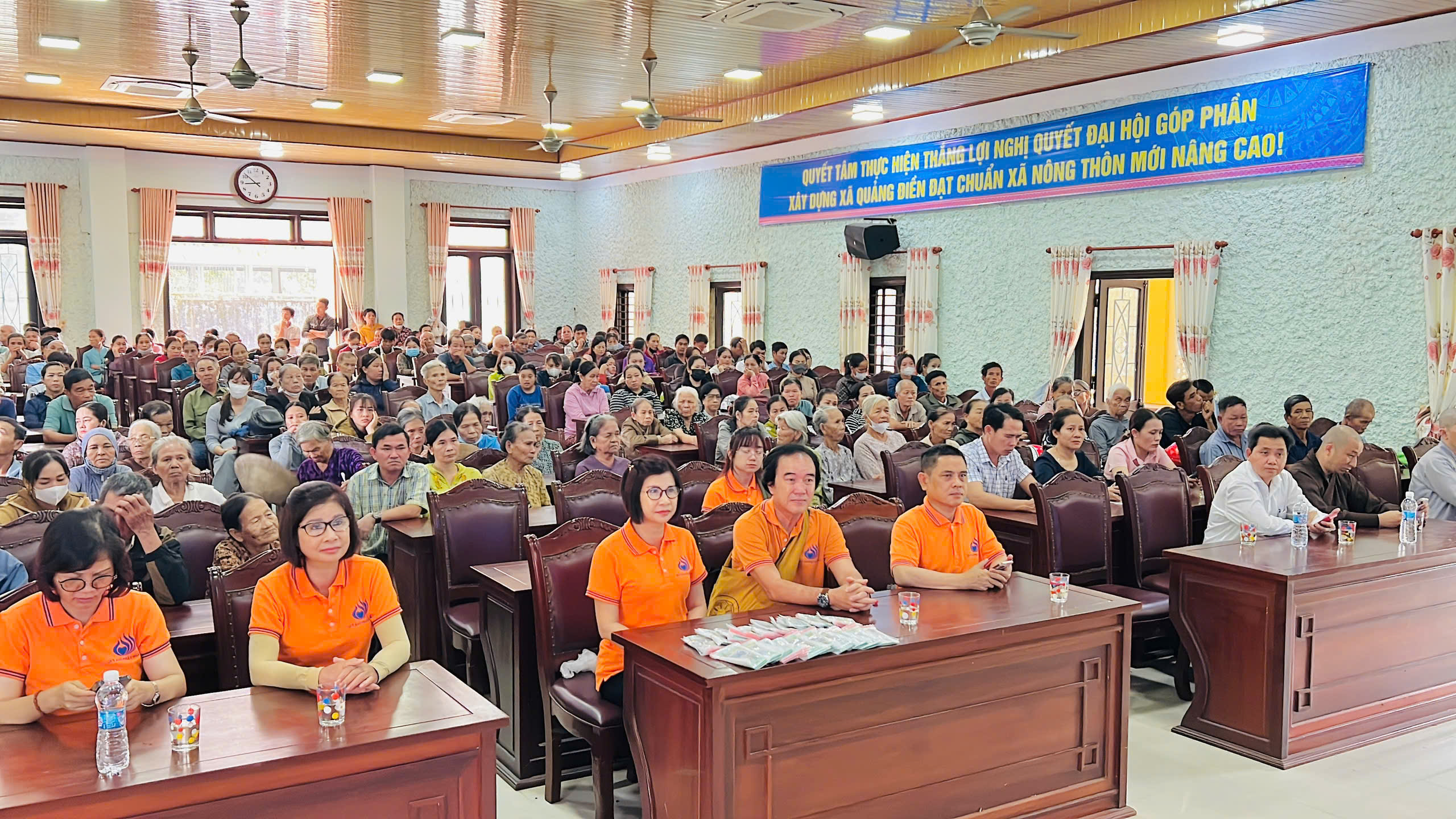 Tại xã Quảng Điền, đoàn đã trực tiếp trao tặng 200 suất tịnh tài hỗ trợ cho 200 hộ gia đình thuộc diện khó khăn nhất trên địa bàn. Mỗi suất quà là 500.000 đồng tiền mặt, với tổng kinh phí hỗ trợ trực tiếp lên đến 100 triệu đồng.