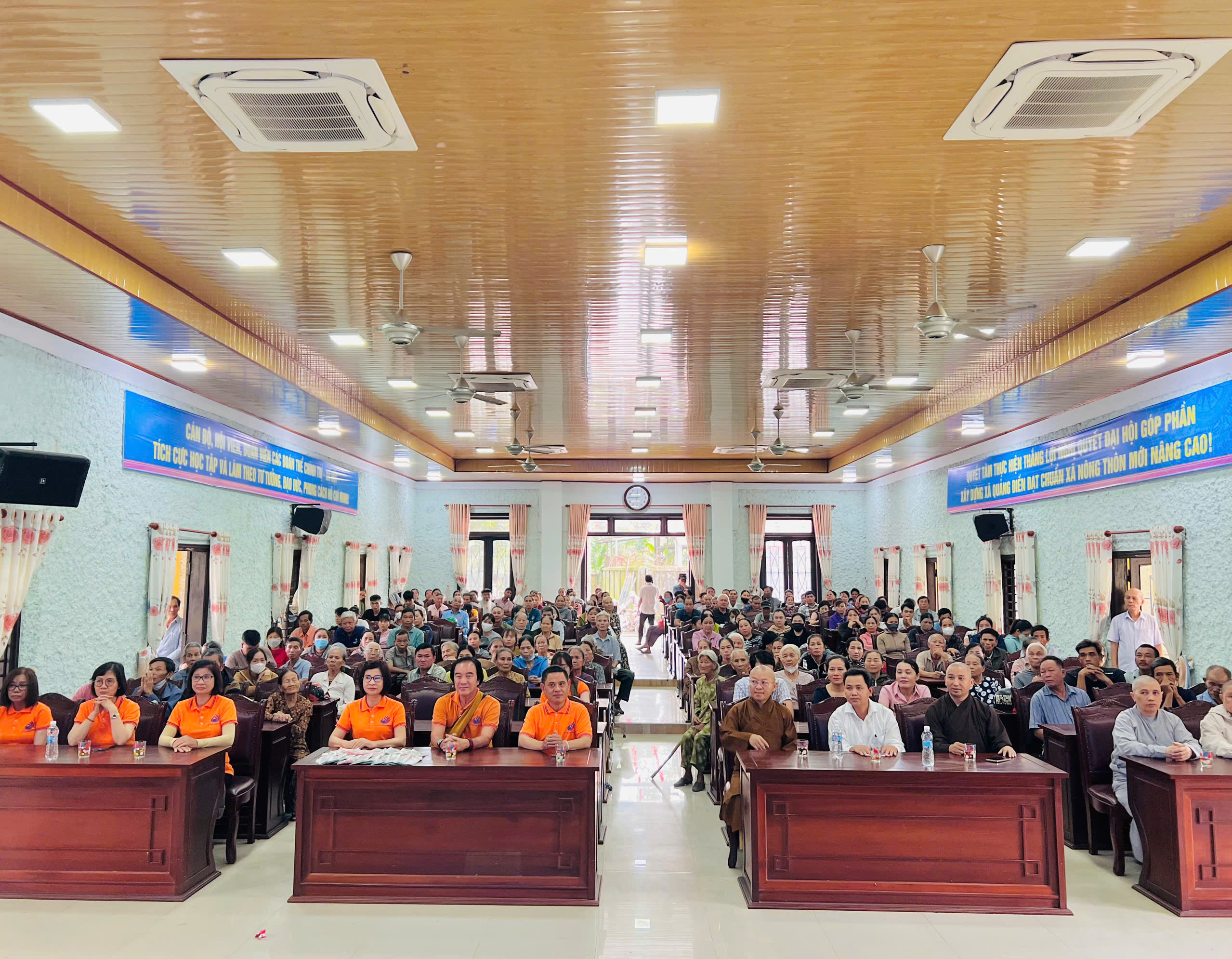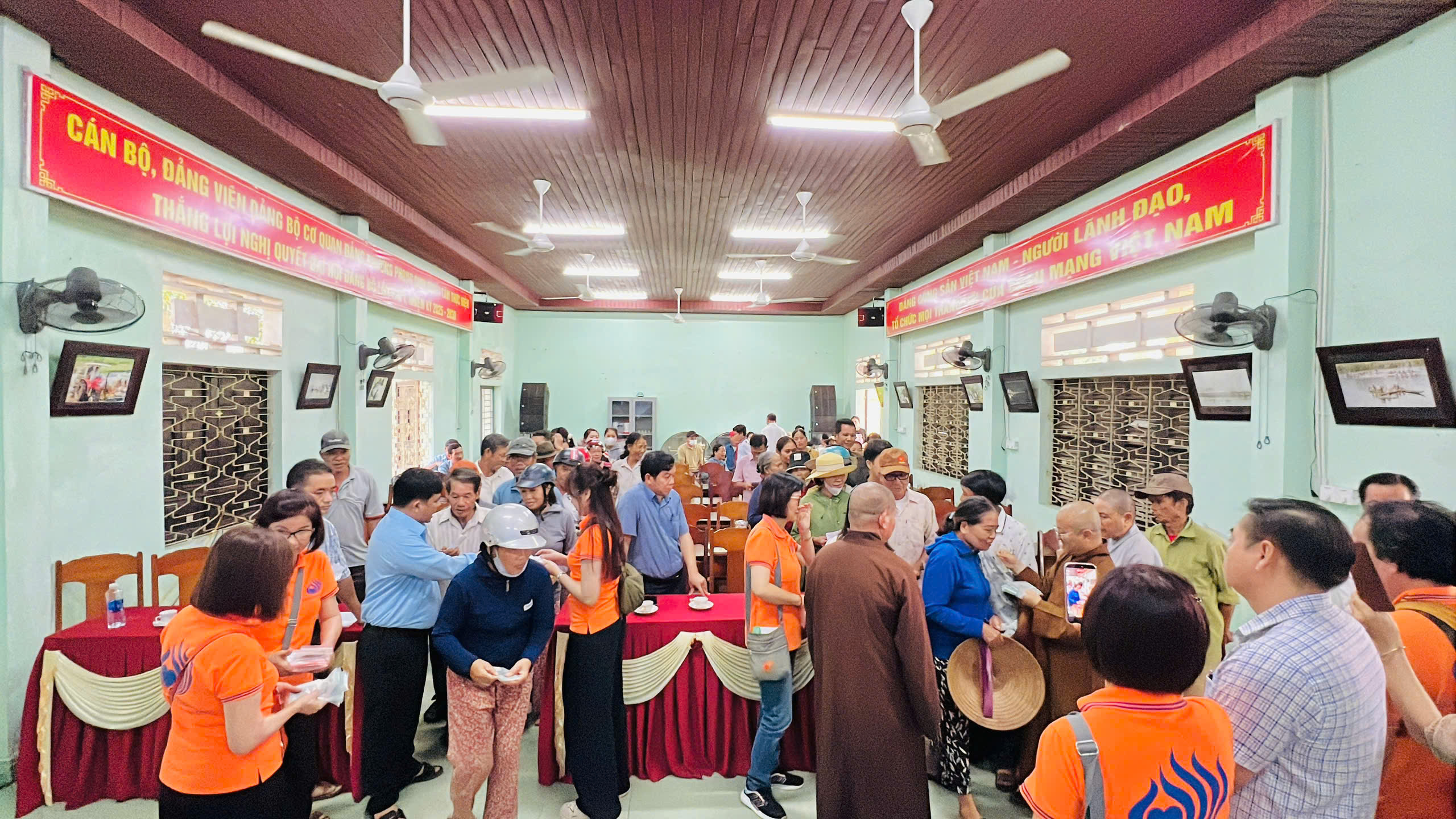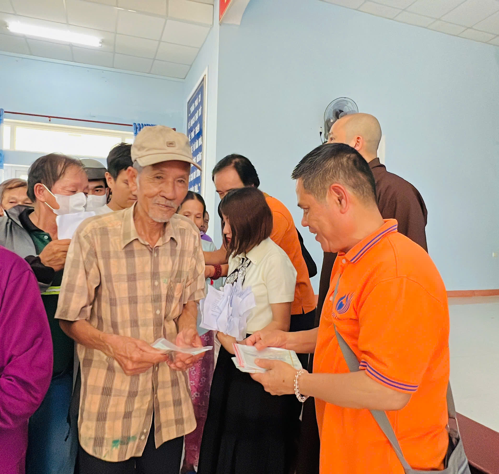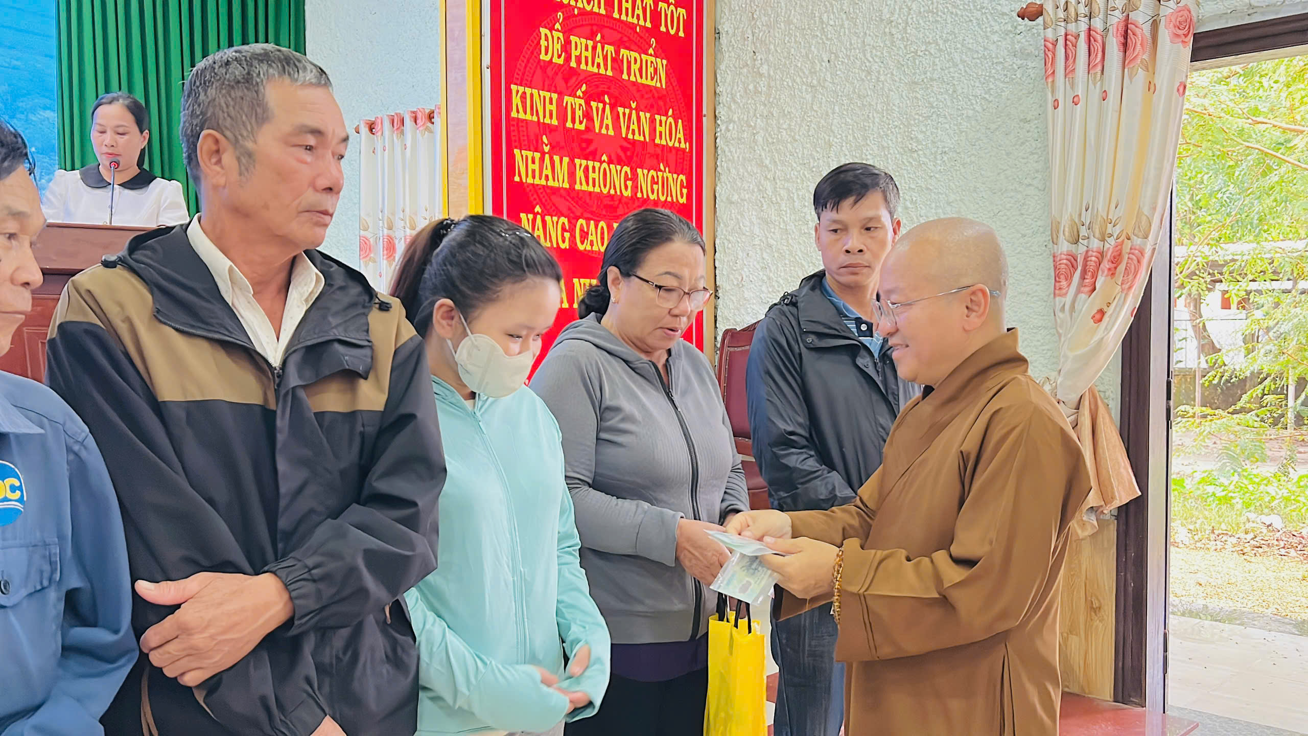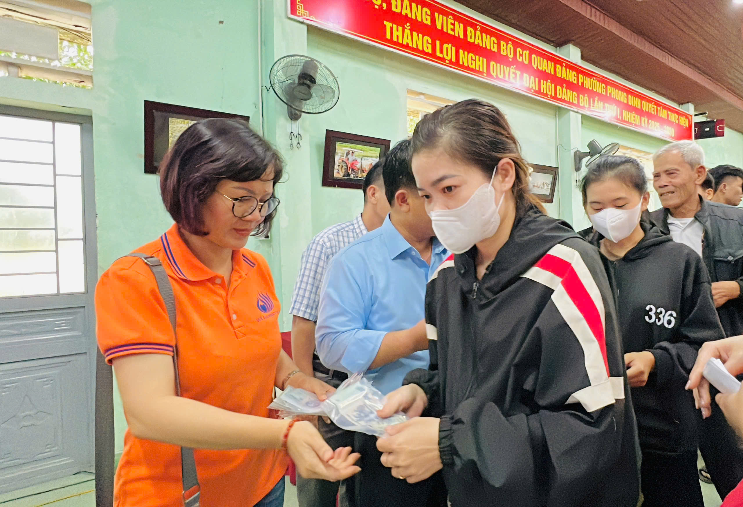 Tại xã Quảng Điền, đoàn đã trực tiếp trao tặng 200 suất tịnh tài hỗ trợ cho 200 hộ gia đình thuộc diện khó khăn nhất trên địa bàn. Mỗi suất quà là 500.000 đồng tiền mặt, với tổng kinh phí hỗ trợ trực tiếp lên đến 100 triệu đồng.
