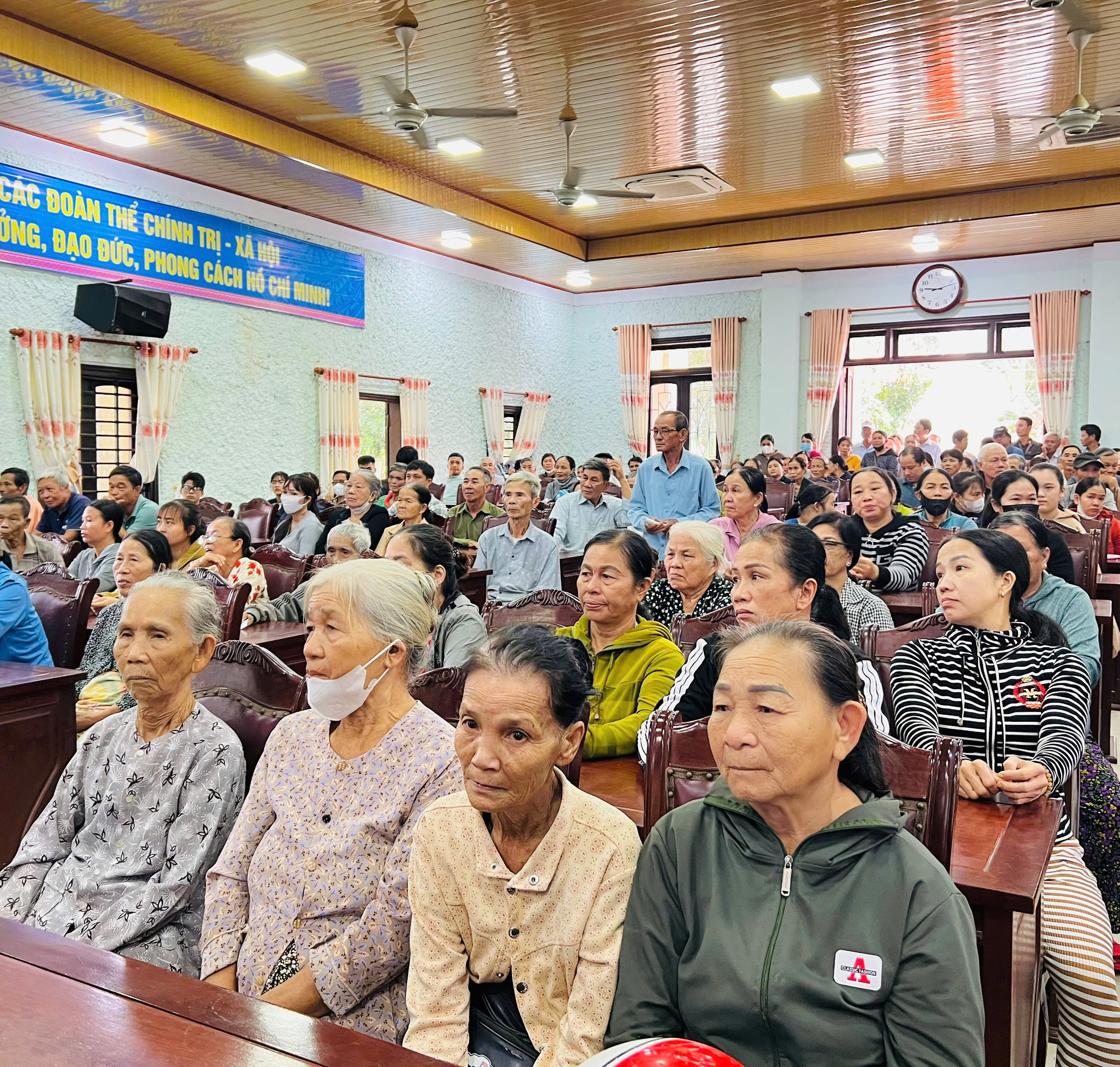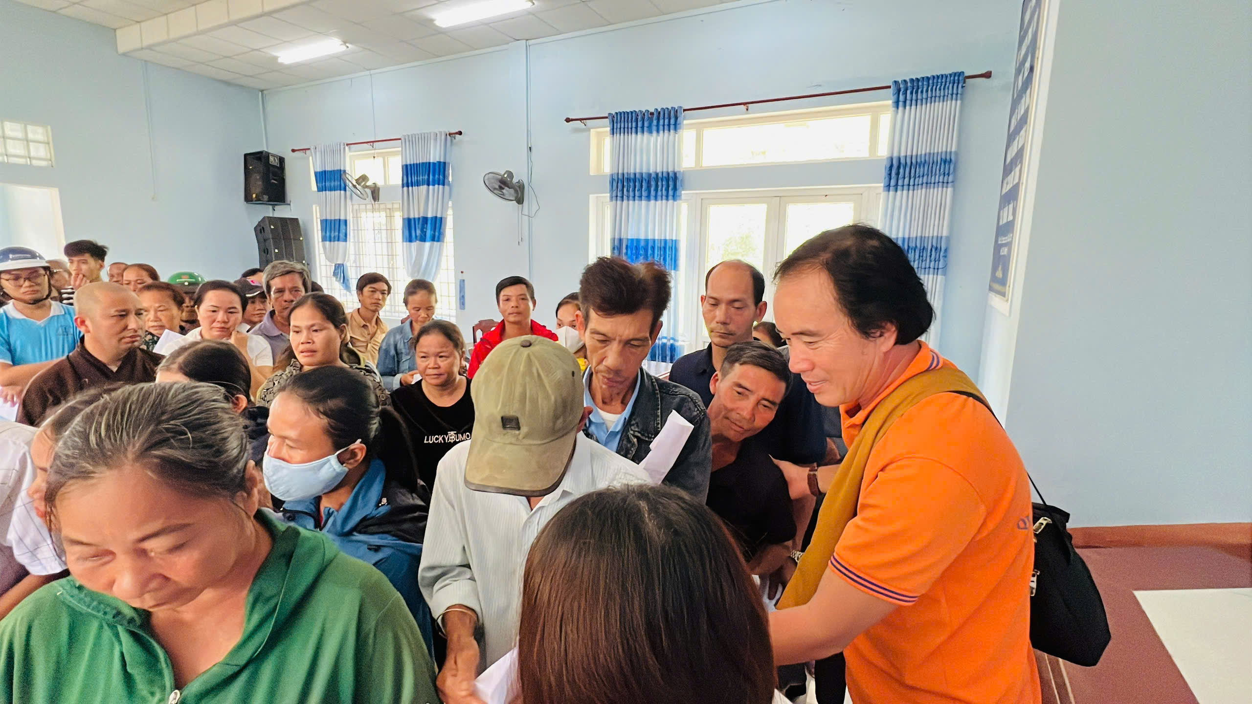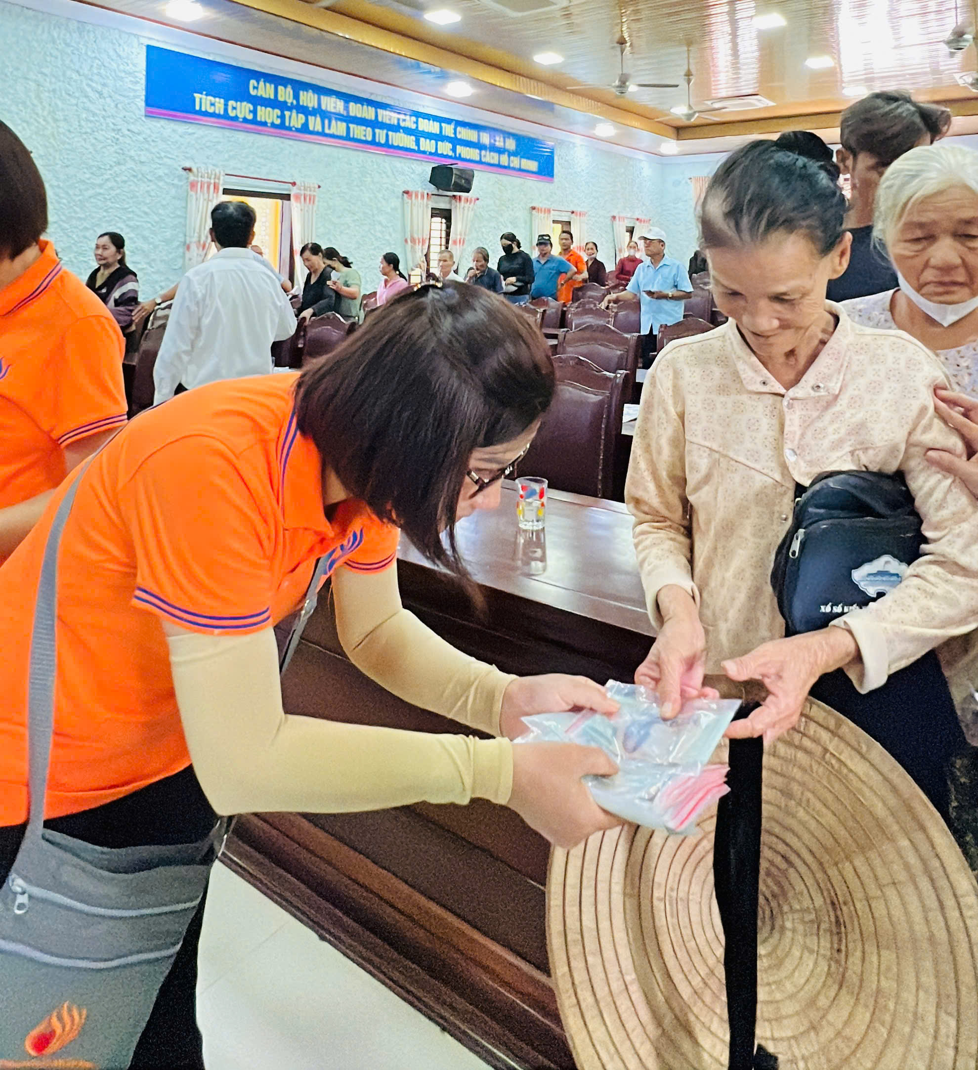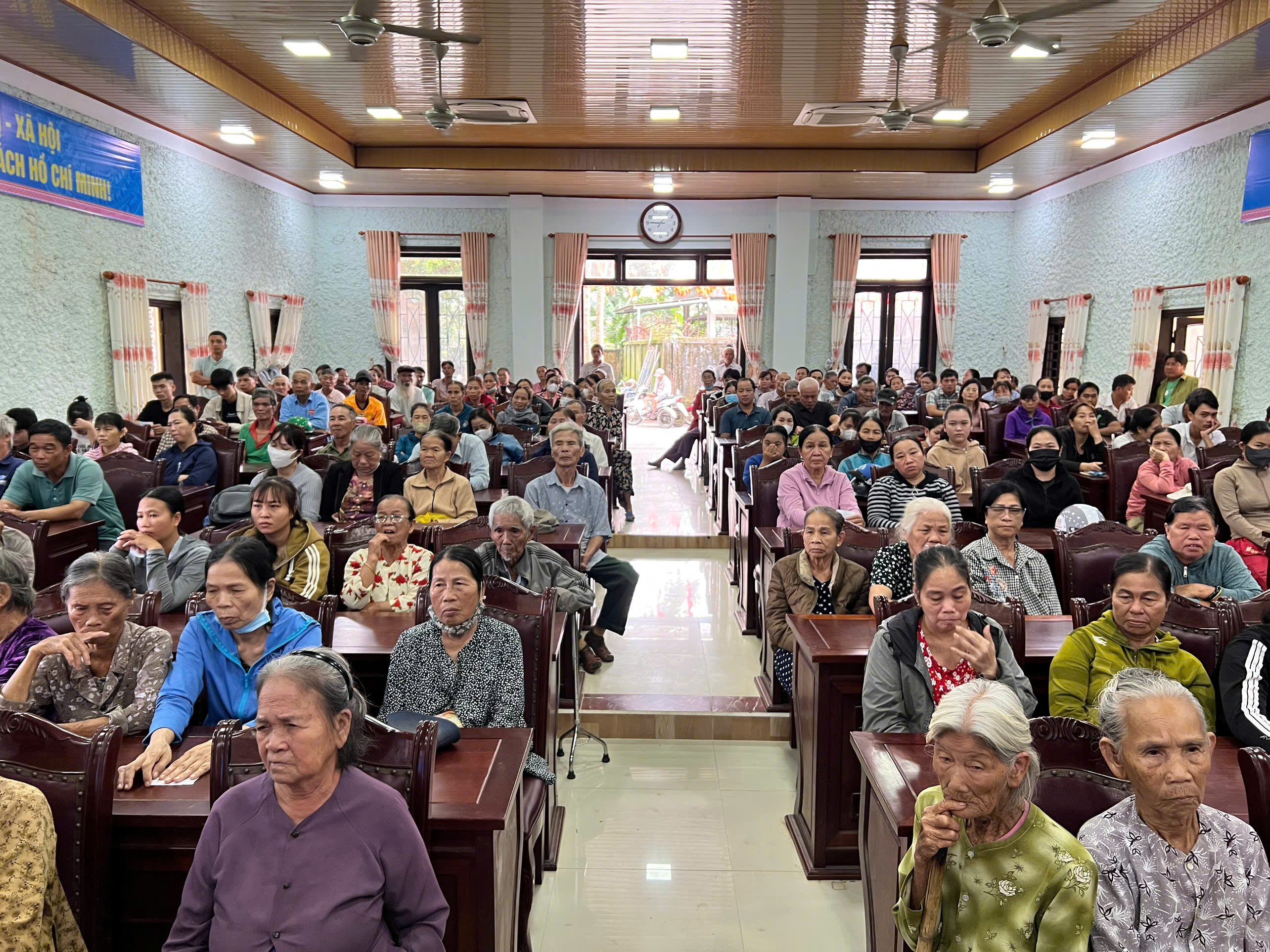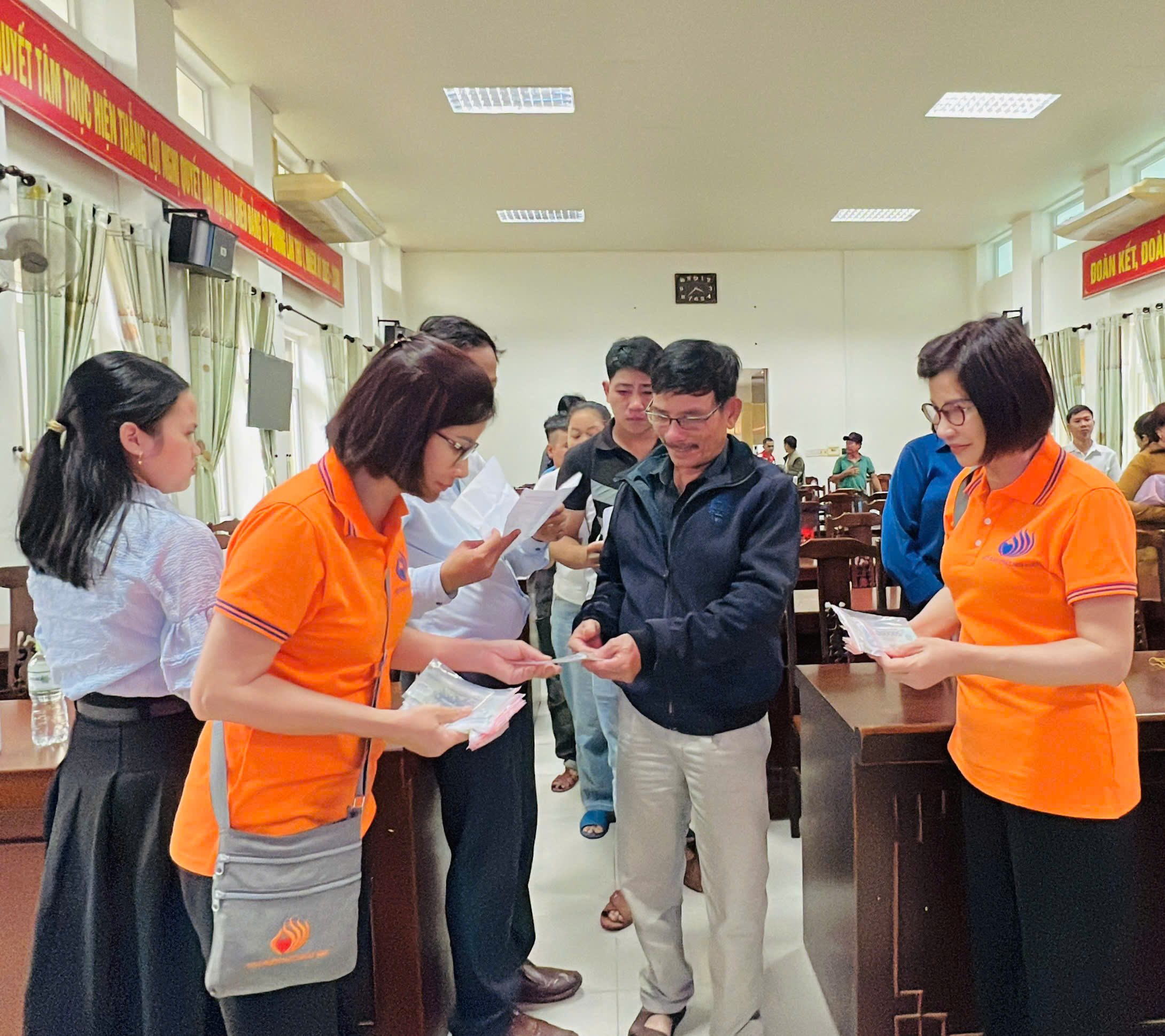 Tại xã Quảng Điền, đoàn đã trực tiếp trao tặng 200 suất tịnh tài hỗ trợ cho 200 hộ gia đình thuộc diện khó khăn nhất trên địa bàn. Mỗi suất quà là 500.000 đồng tiền mặt, với tổng kinh phí hỗ trợ trực tiếp lên đến 100 triệu đồng.