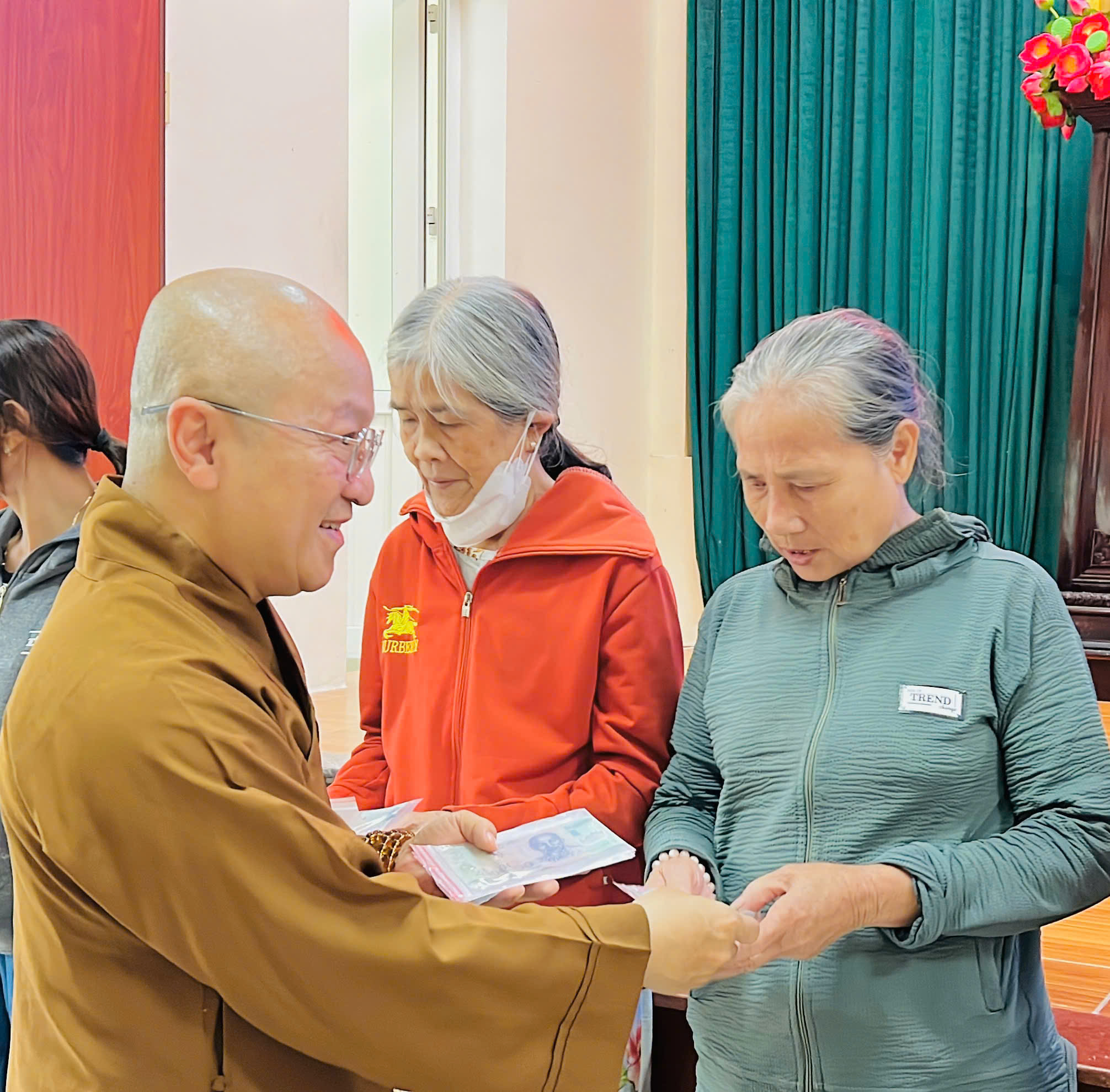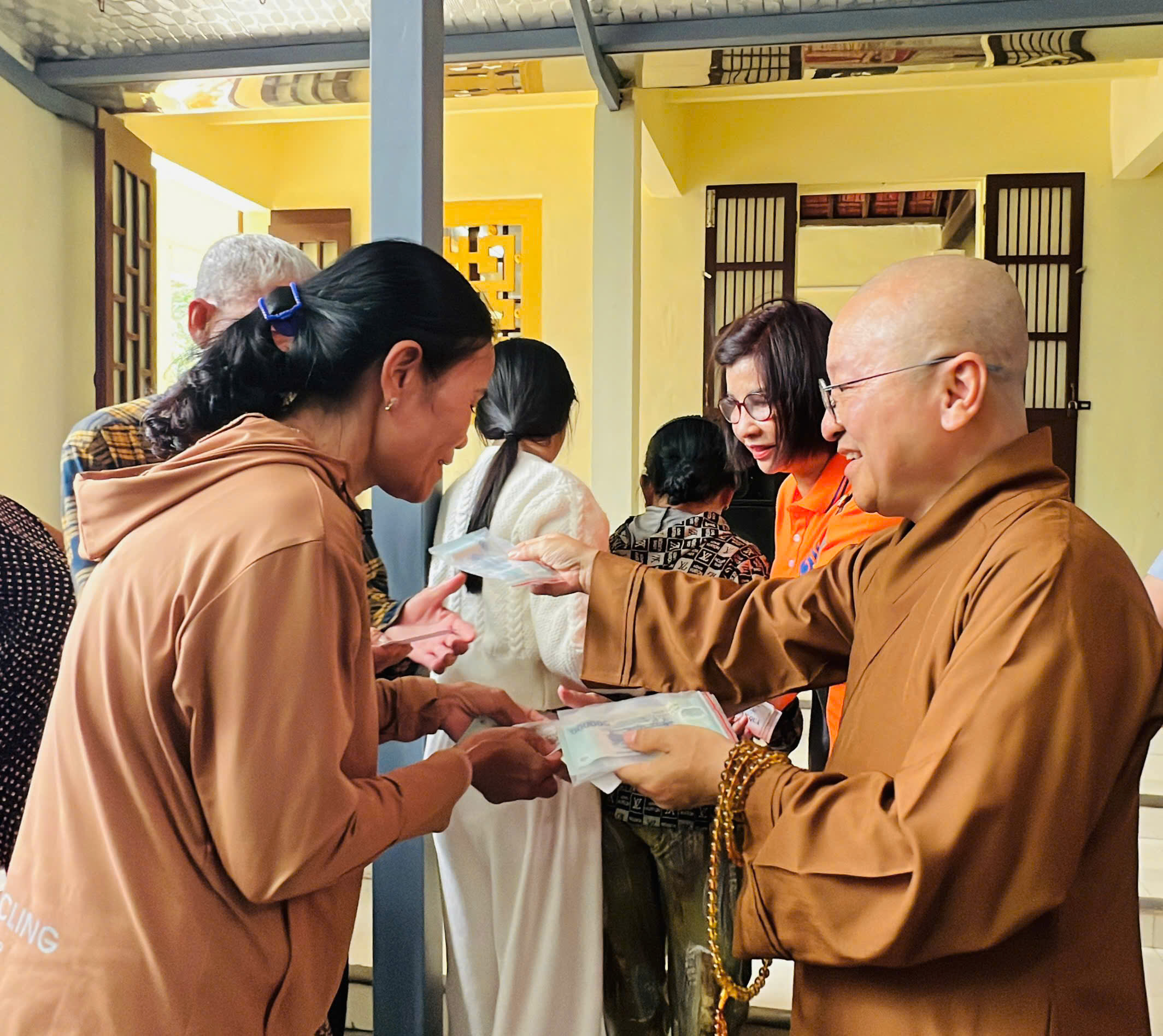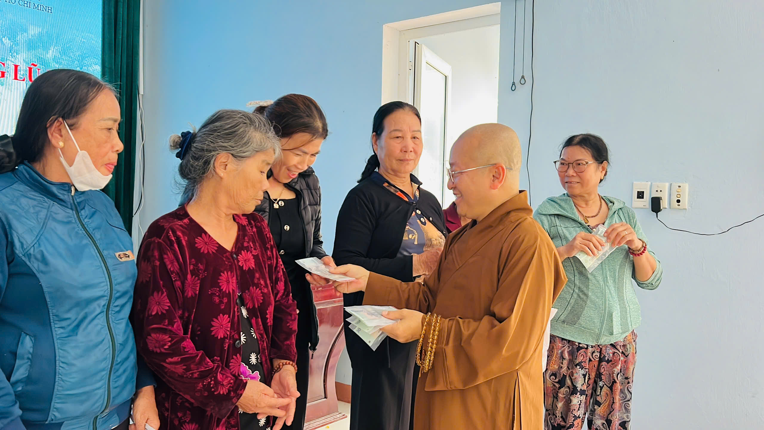 Đồng thời, đoàn đã cúng dường chư tôn đức Tăng Ni hỗ trợ chuyến cứu trợ lũ lụt: