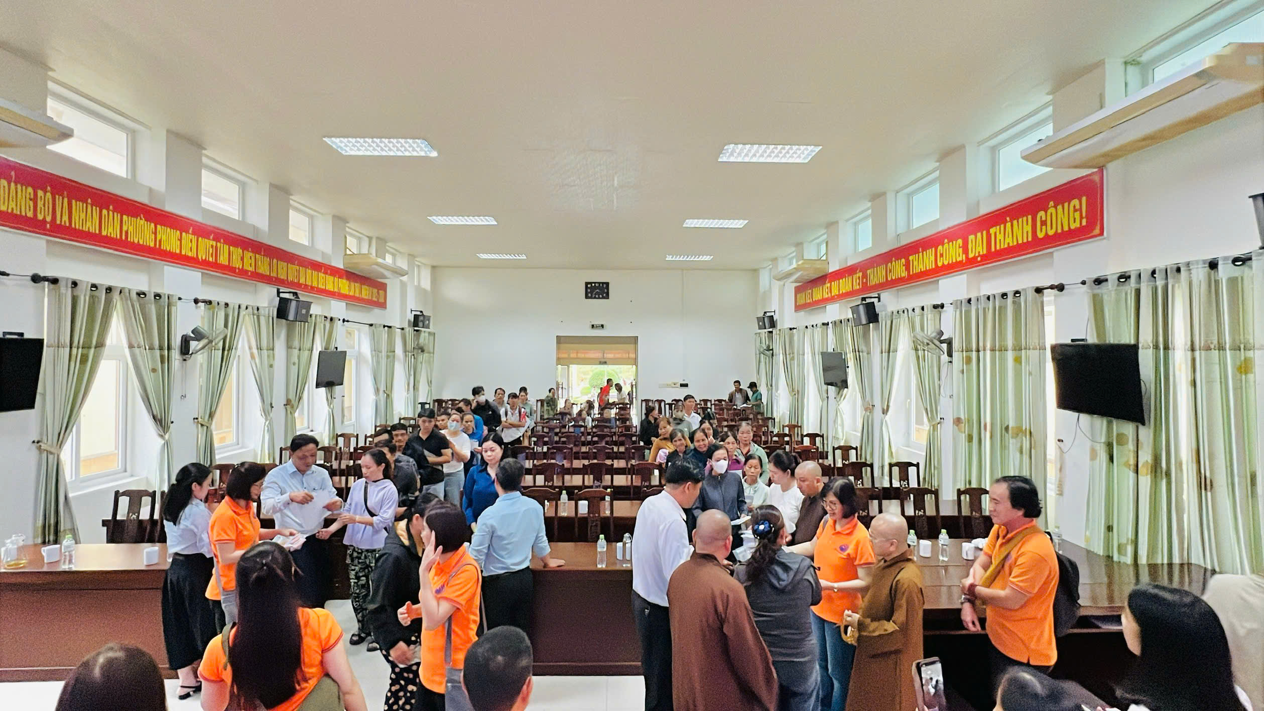 Tại phường Phong Thái, đoàn đã trực tiếp trao tặng 100 suất tịnh tài cho 100 hộ gia đình chịu ảnh hưởng nặng nề. Mỗi suất trị giá 500.000 đồng tiền mặt, tổng hỗ trợ là 50 triệu đồng. Nhân đây, đoàn đã cúng dường 10 triệu đồng đến chùa Công Thành, hỗ trợ chùa trong công tác khắc phục lũ lụt.