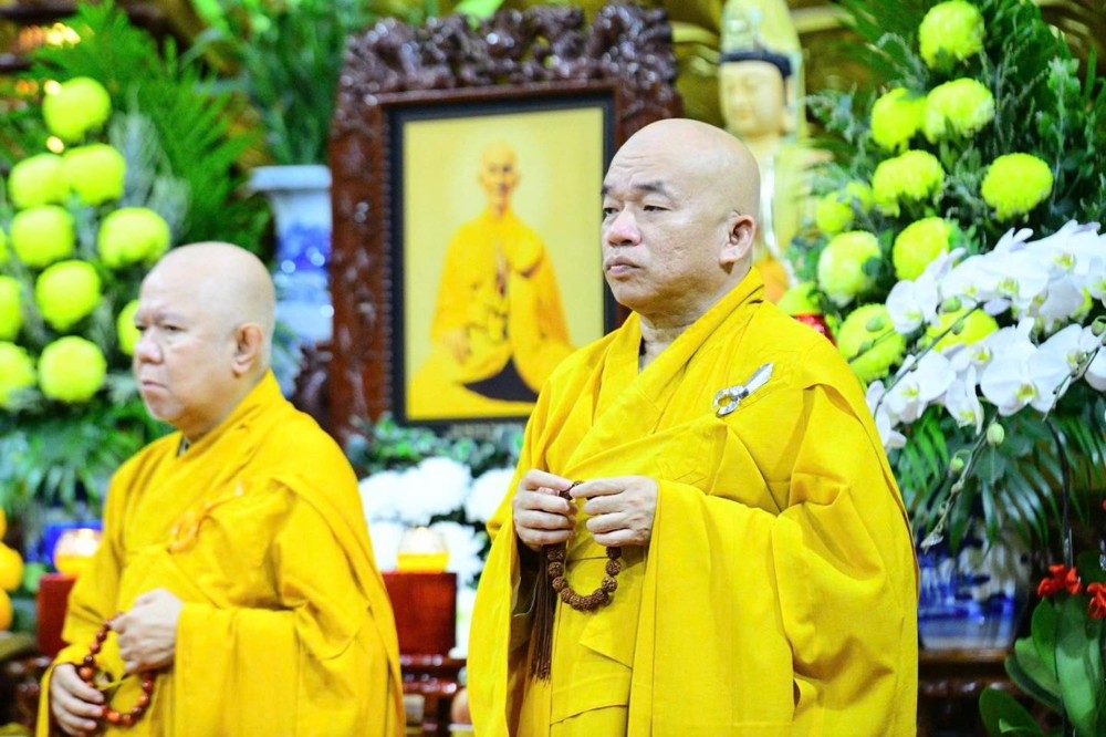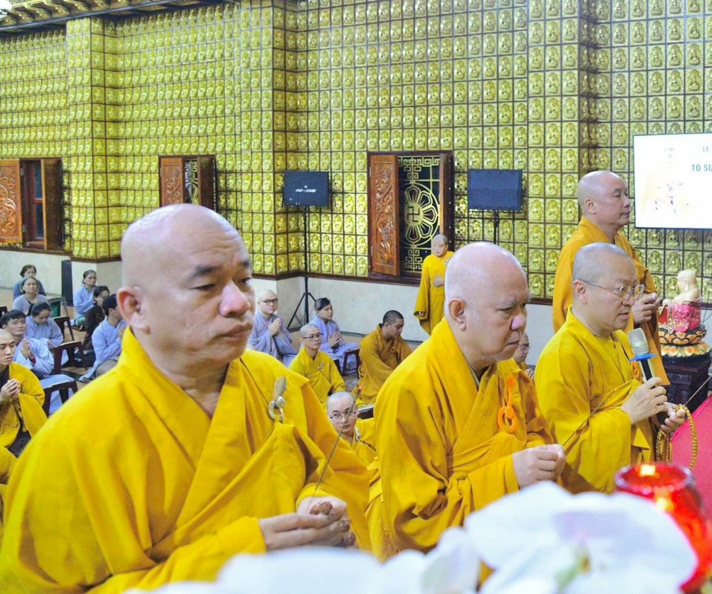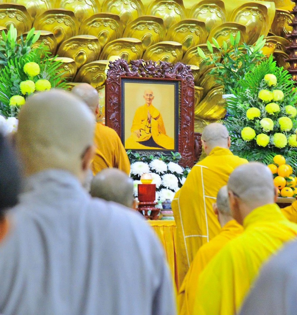 Dịp này, hội chúng hiện diện đối trước giác linh Tổ sư trì tụng thời kinh cúng dường và tưởng niệm 55 năm ngày viên tịch của Ngài.